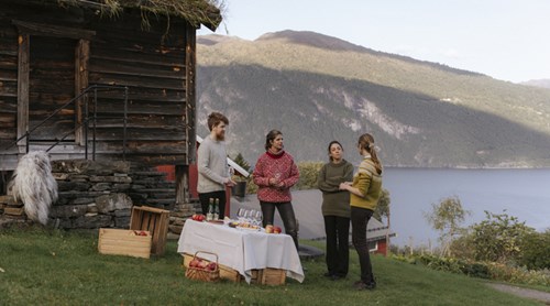 Nestled within the breathtaking fjords of Norway, in the Sunnmøre region, lies Skarbø Gard, an apple and cider farm that is a testament to the harmony of tradition and craftsmanship. This is where we produce our very own apple cider Fjordgull which is available at all our properties. Owned by Kristine and Carlos, Skarbø Gard is not just any farm; it's an institution that carries the legacy of eight generations. The farm itself is one of the oldest in the area, with a history of more than 1,000 years of continuous cultivation and habitation. This longevity is not just a number; it's a reflection of the sustainable practices and deep respect for nature that have been passed down through generations. The land stretches from the serene fjord up to the summer farm in the mountains giving the apples an especially great taste. Enjoy our Fjordgull cider chilled in our gardens, as a pairing to servings in our restaurants, or as a nightcap in front of the fireplace.